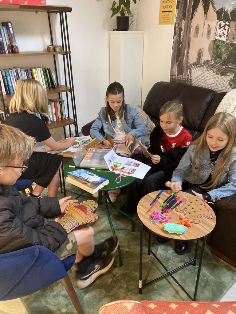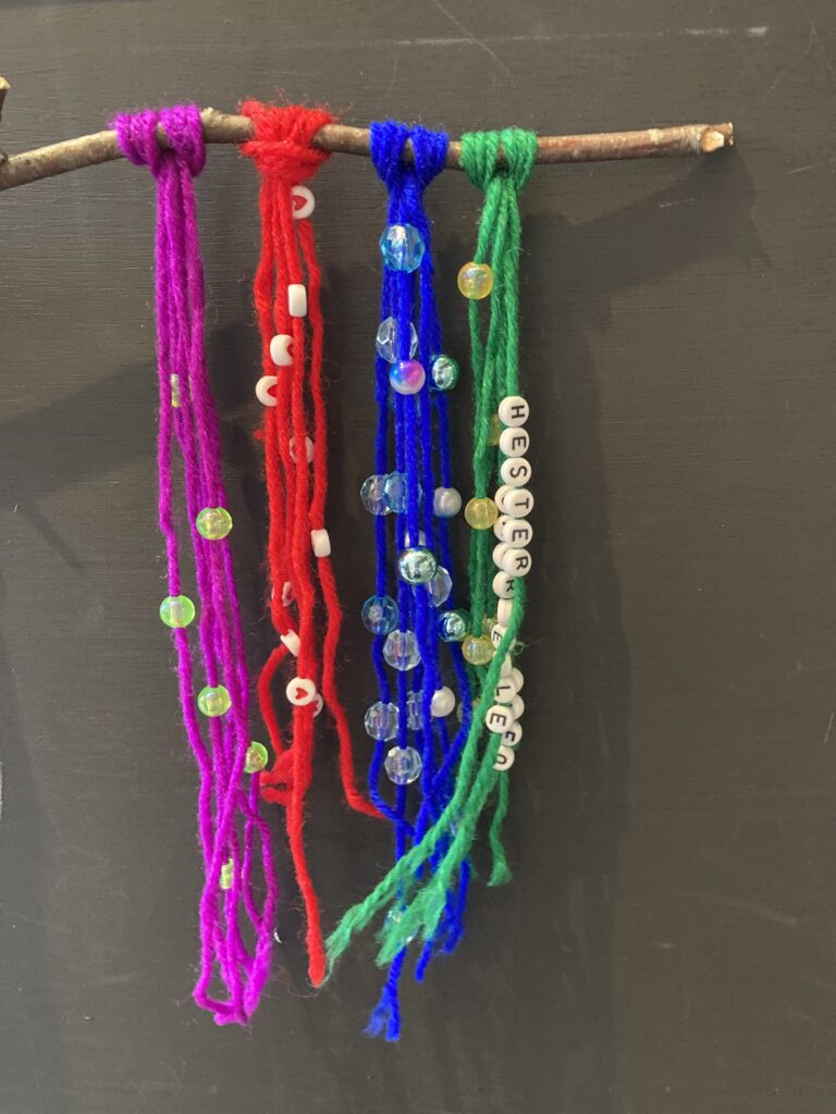 Making yang hangings in book club! The threads represent different themes and characters from the book.
