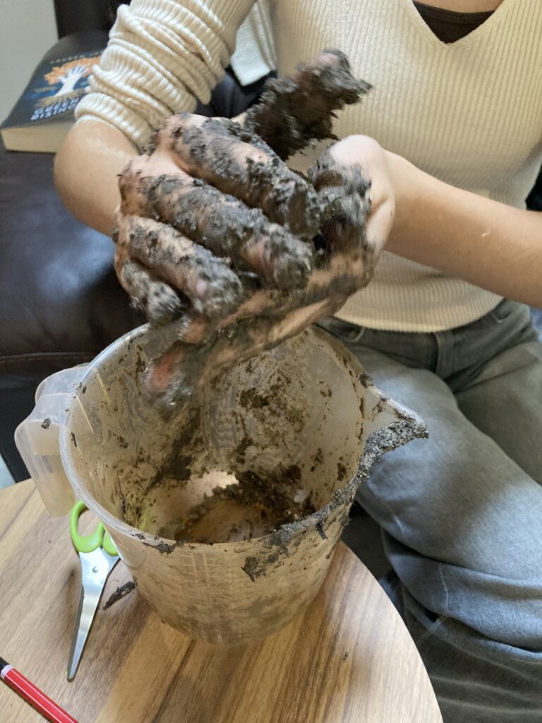 The characters in the book we were reading could grow pkants from their skin, so we made seed bombs!